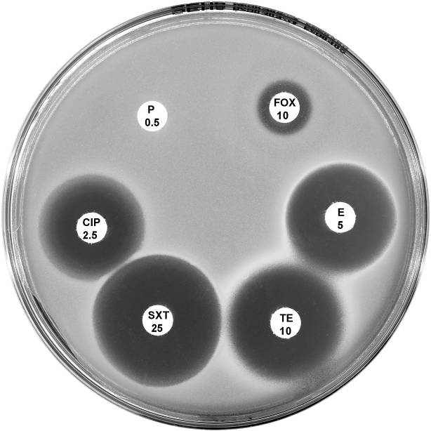 Plate 12.5.C Staphylococcus saprophyticus mecA gene positive Urinary isolate showing resistance to ampicillin (AMP 5) and cephalexin (CL 100). |